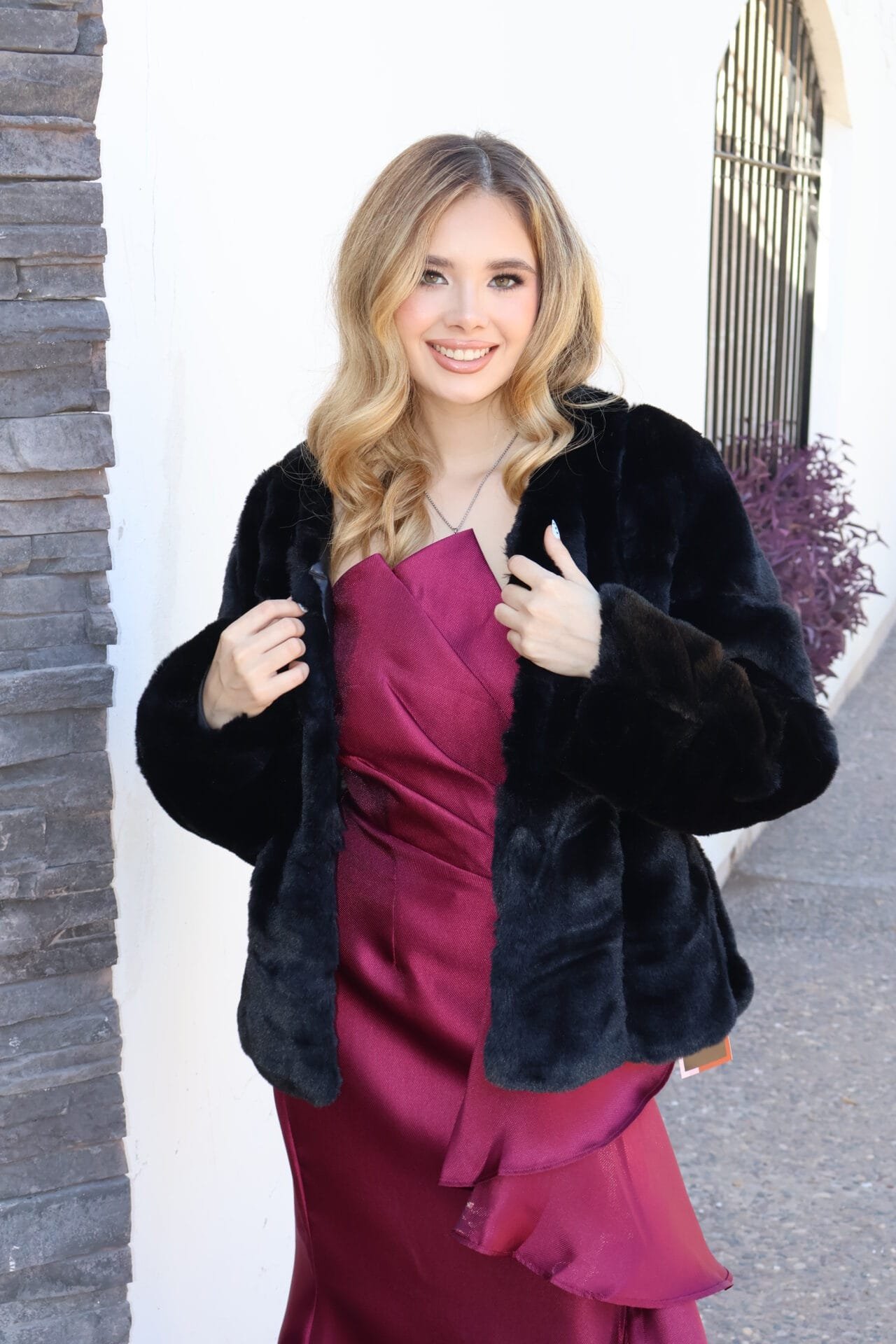 Abrigo de faux fur negro corto