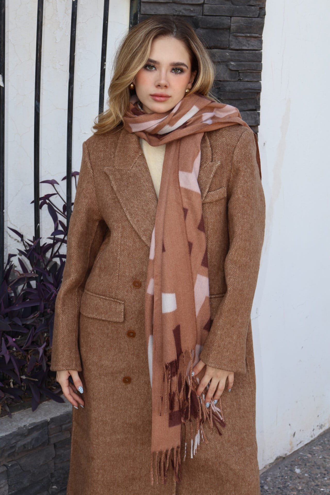Chaleco largo tipo piel con gorro beige