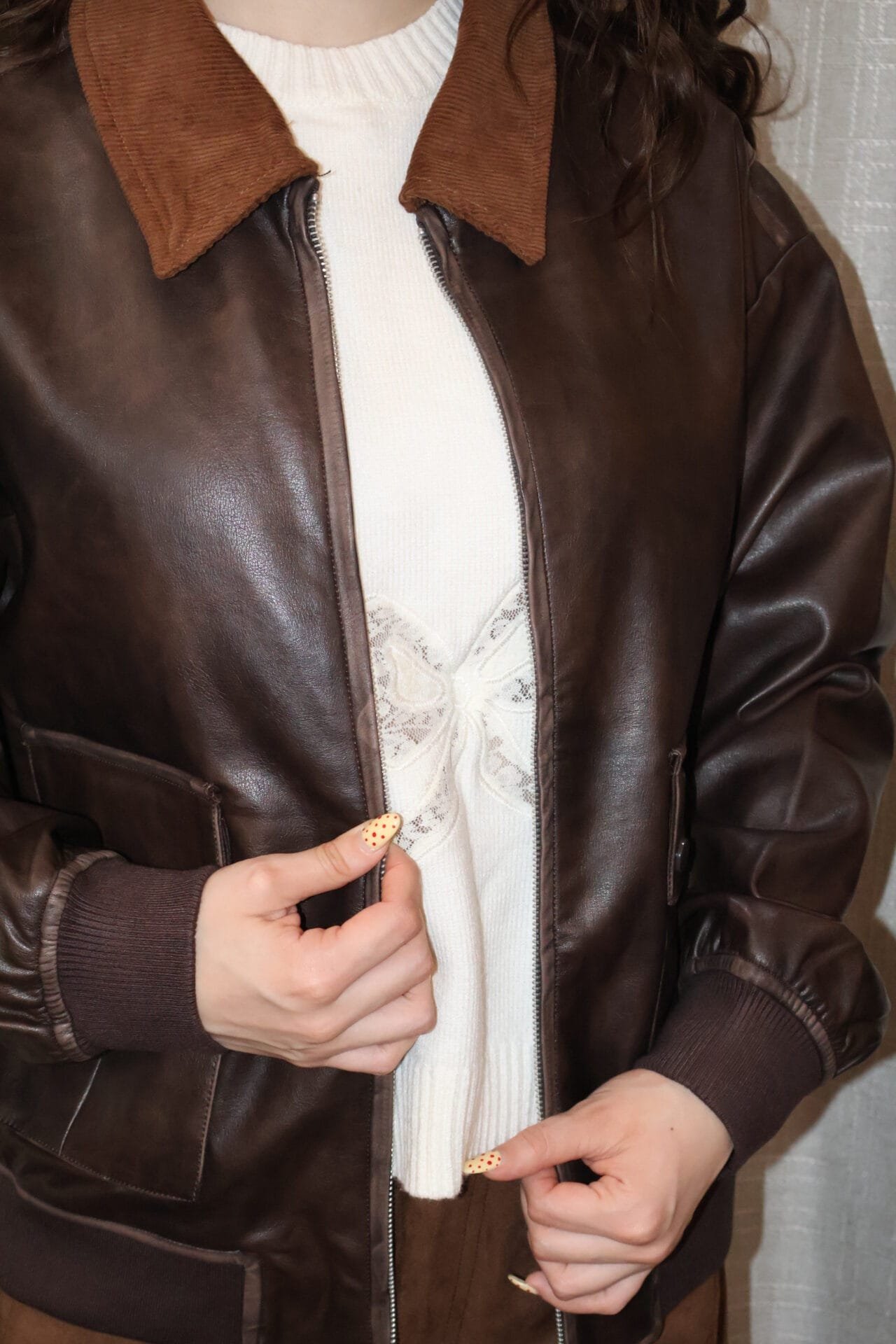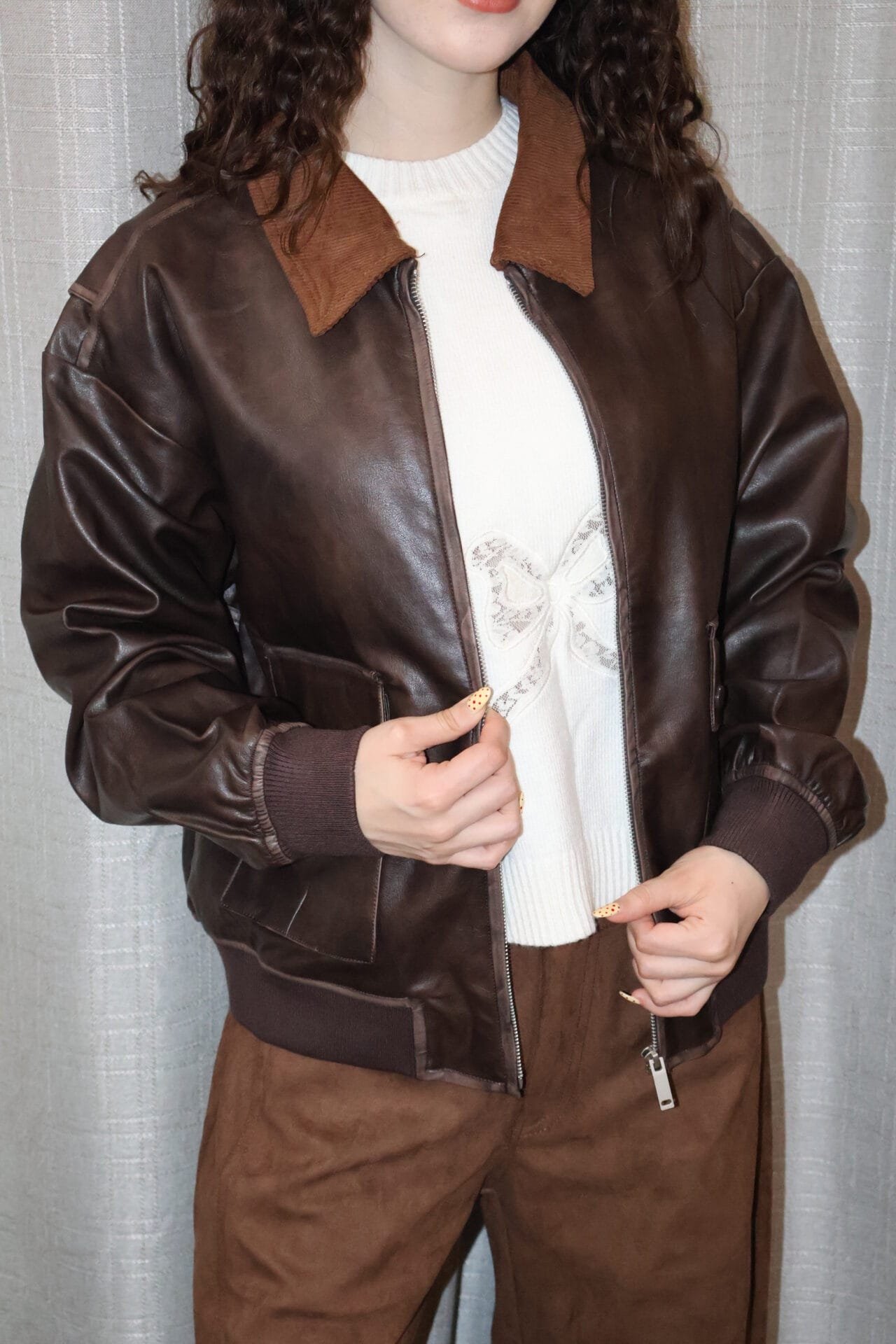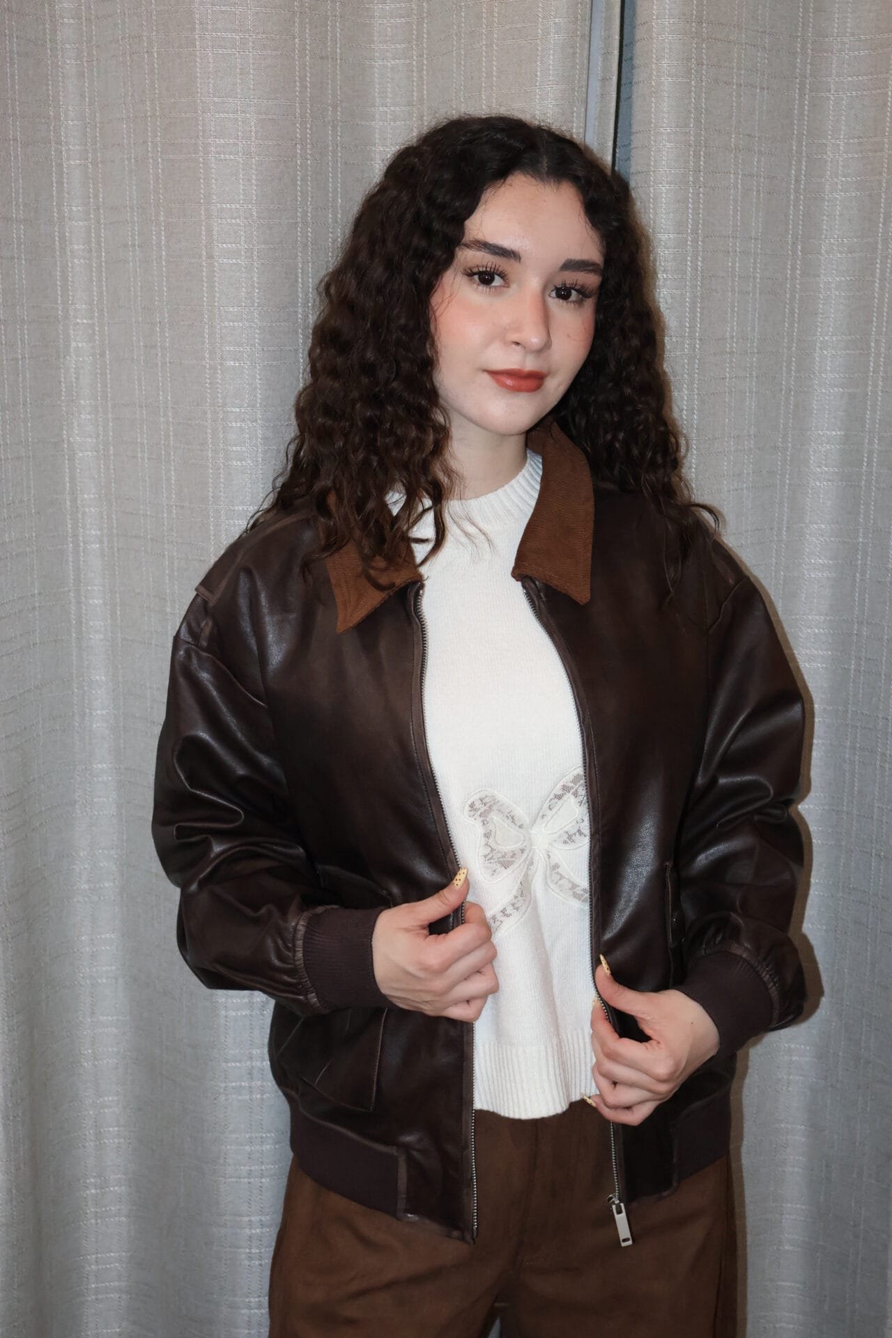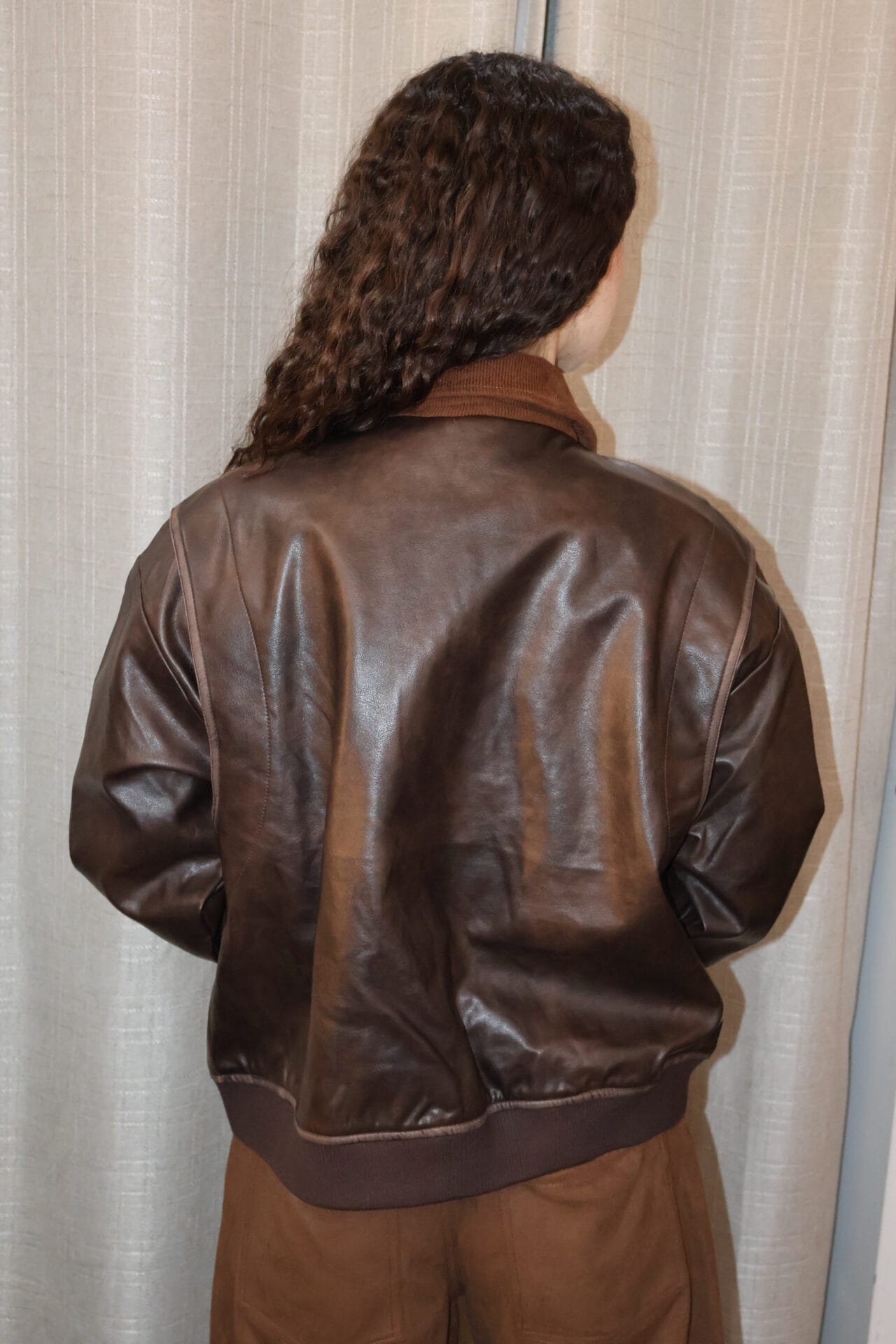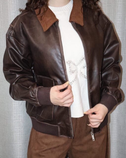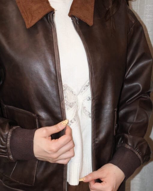 Chamarra café tipo piel