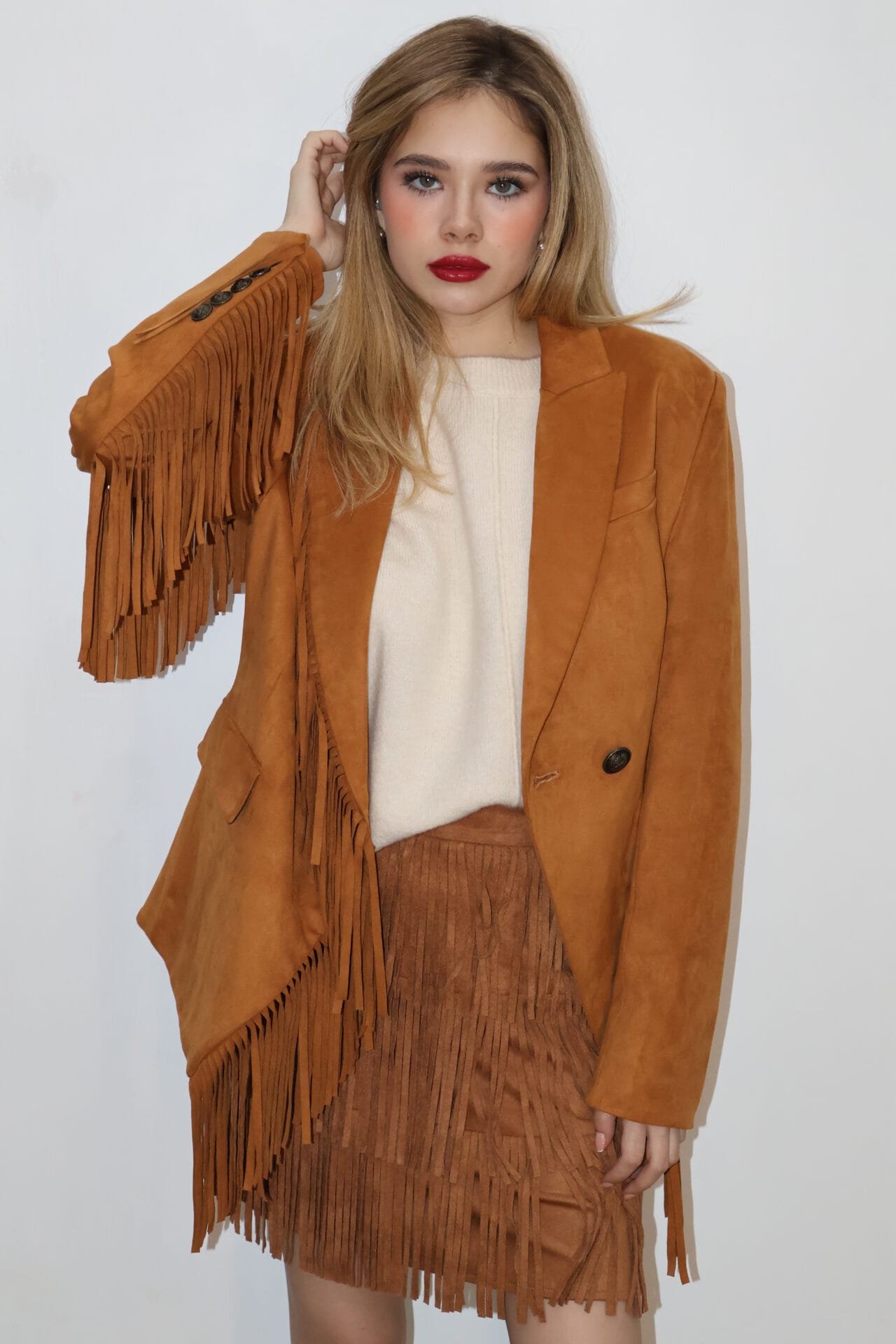 Chamarra lisa negra con barbas