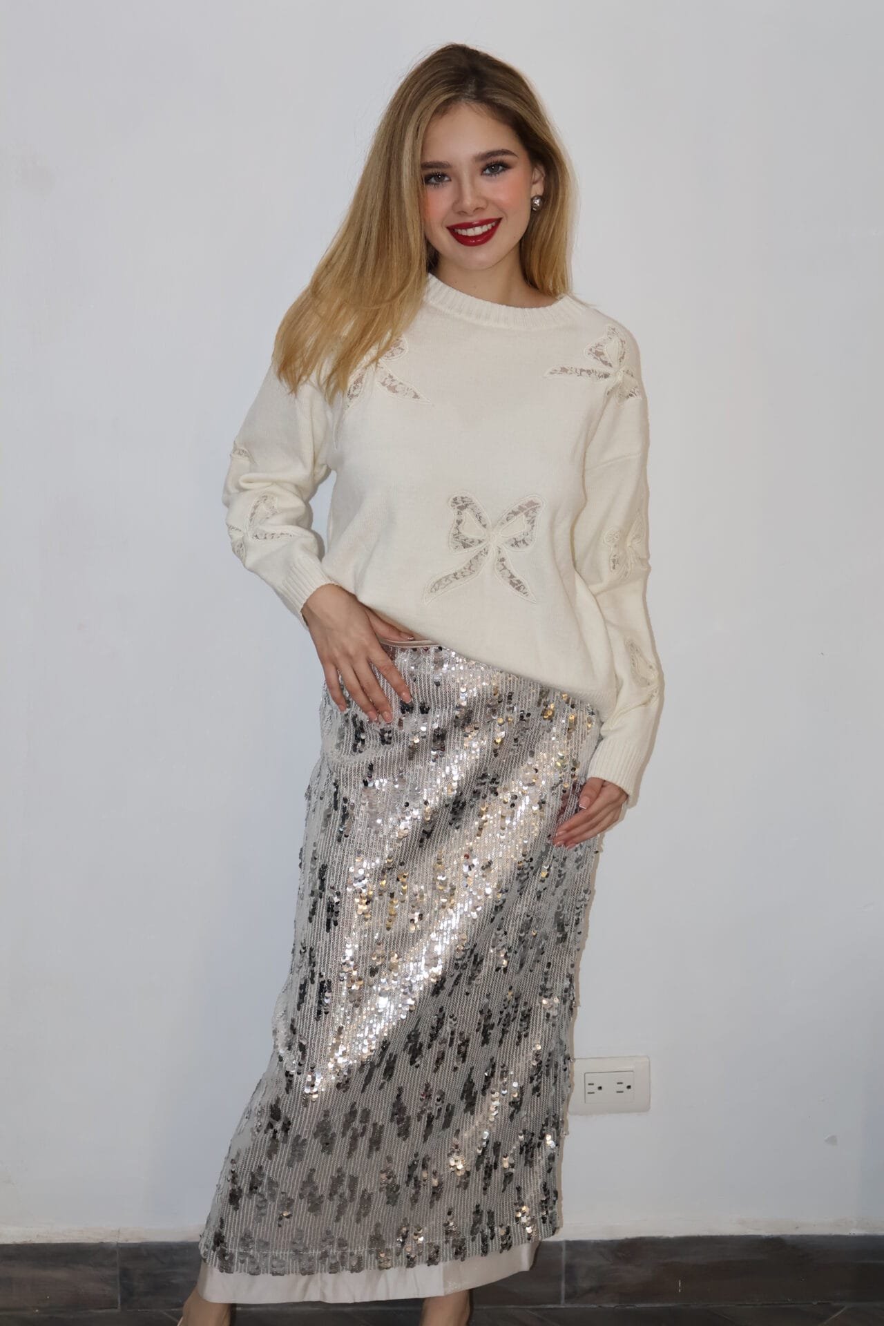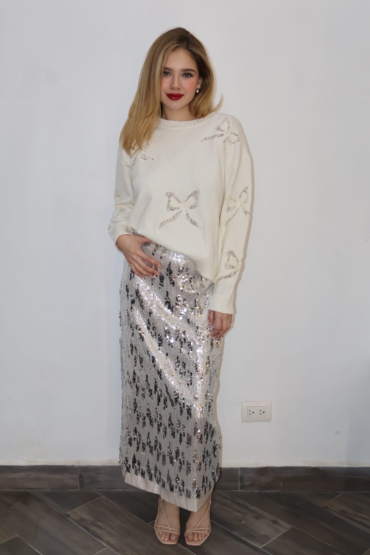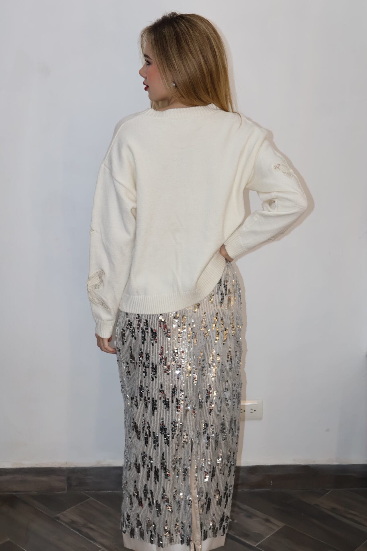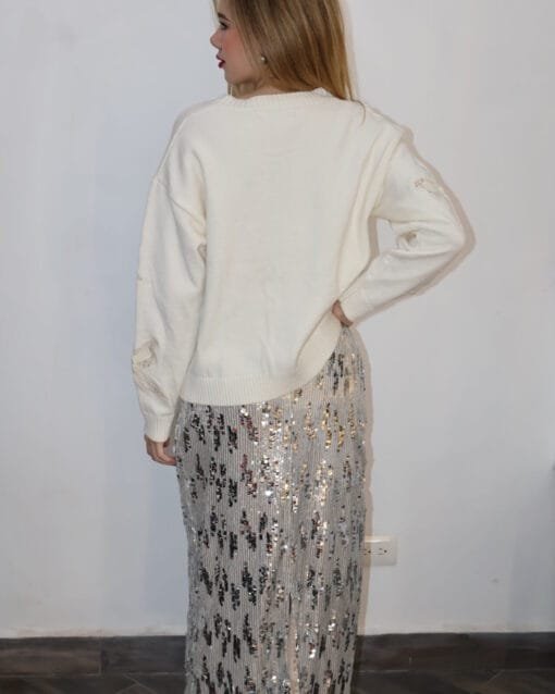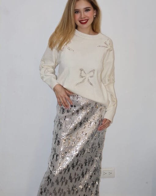 / Falda larga de lentejuelas plateada