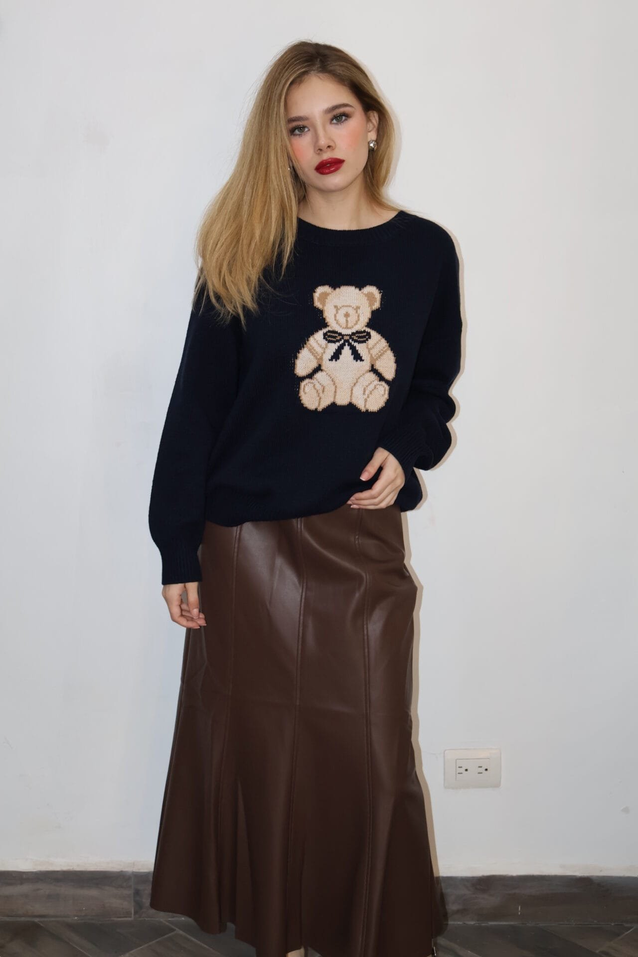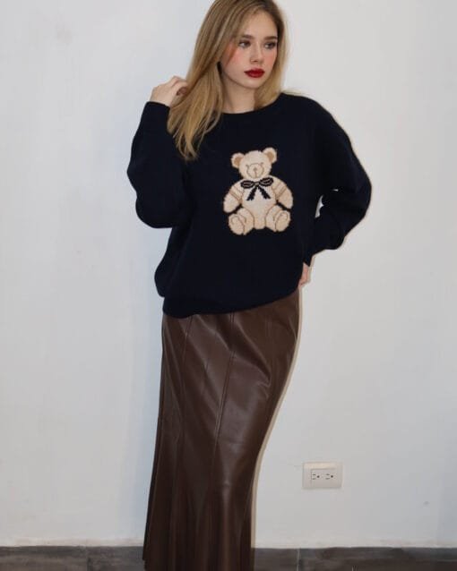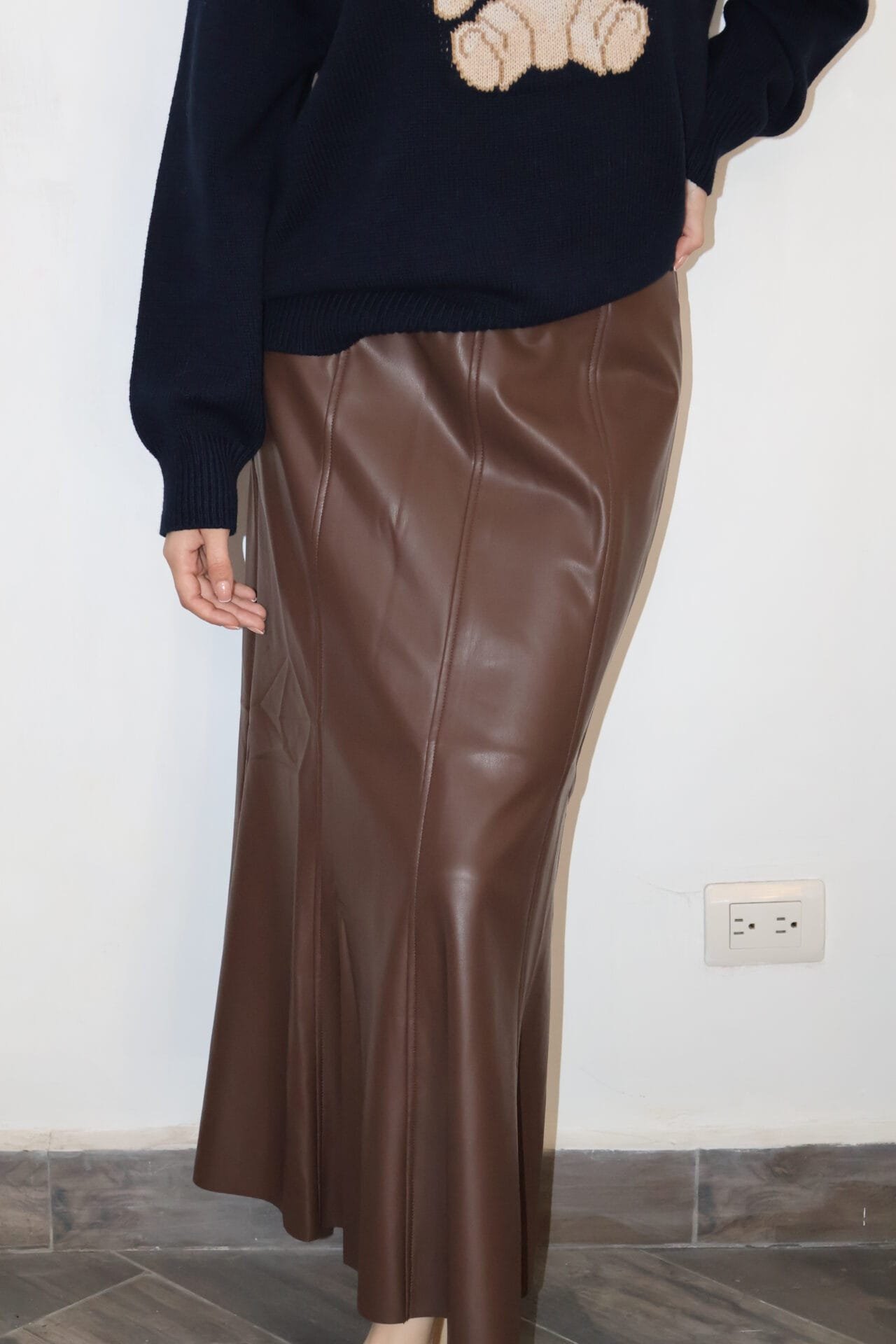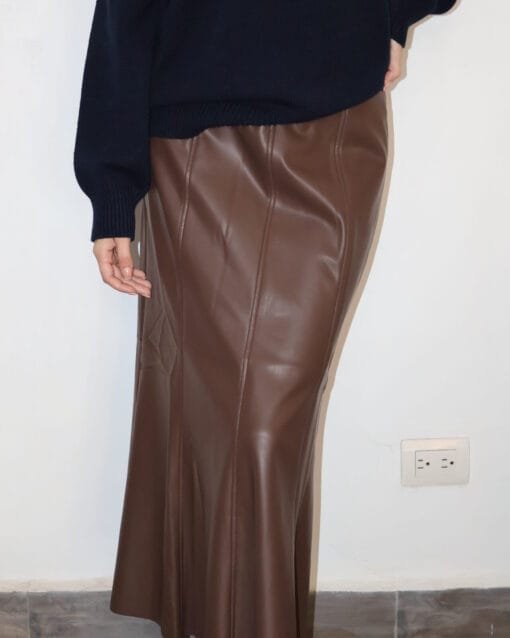Falda midi tipo piel lisa café cantidad