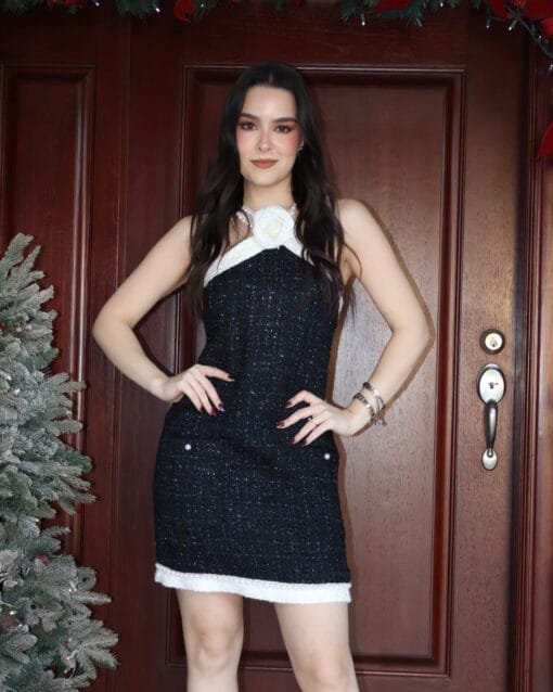 Set con flor negro con beige