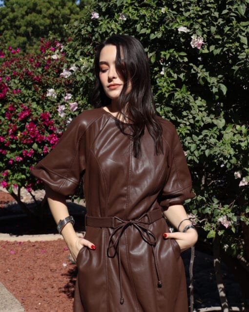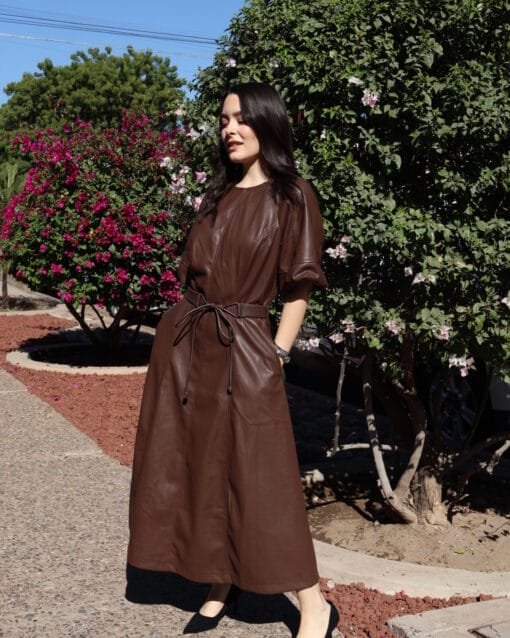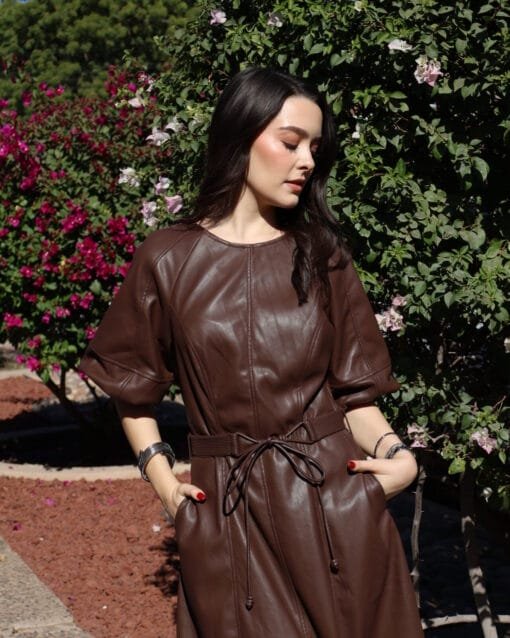 falda café de olanes con barbas