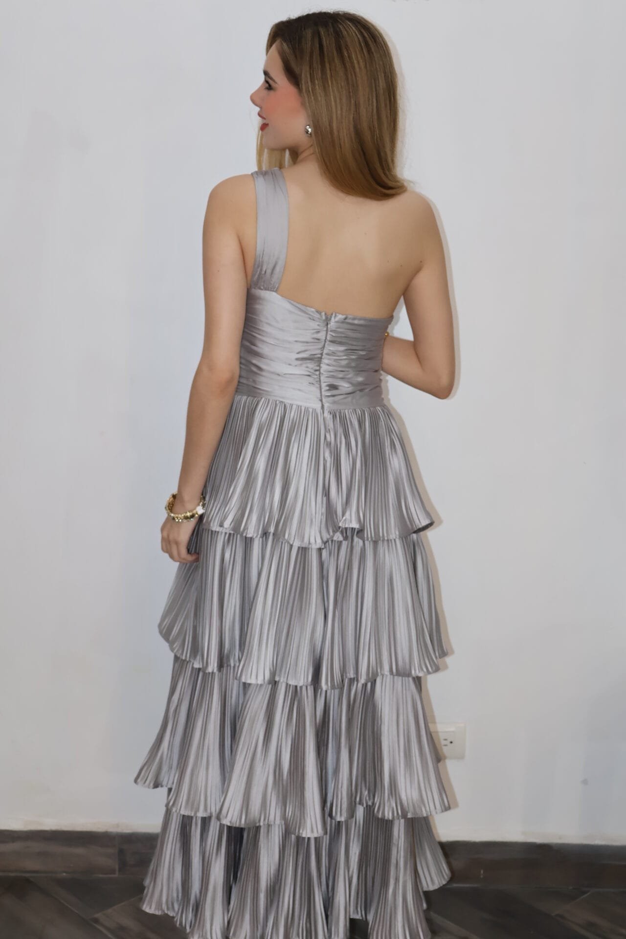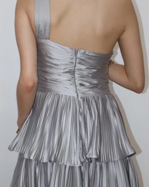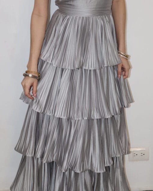 Vestido largo plisado lila y coral
